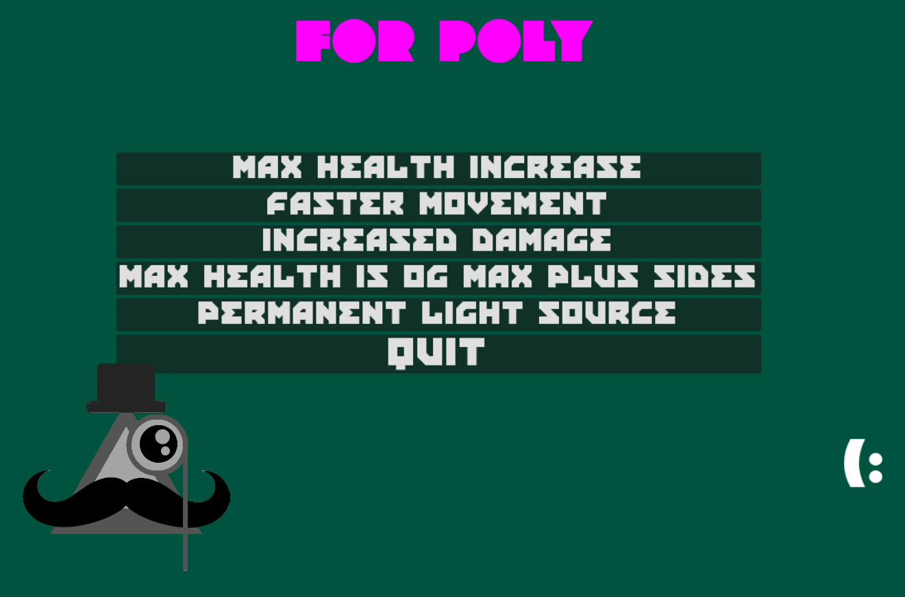 Fun fact: This game was ENTIRELY based on shapes from the ground up. Everything from the triangle room being in three counts (three sides) to the pentagon room being in 5/4 time. We even used square wave noises on the square levels and triangle chip noises on the triangle levels.